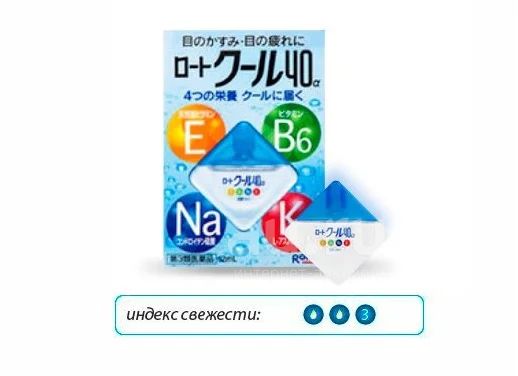 RohtoCool 40 освежают, увлажнют, а также служат хорошей профилактикой снижения остроты зрения и инфекционных заболеваний, так как витамины - это основа клеток всего организма, с помощью которых и достигаются необходимые результаты.