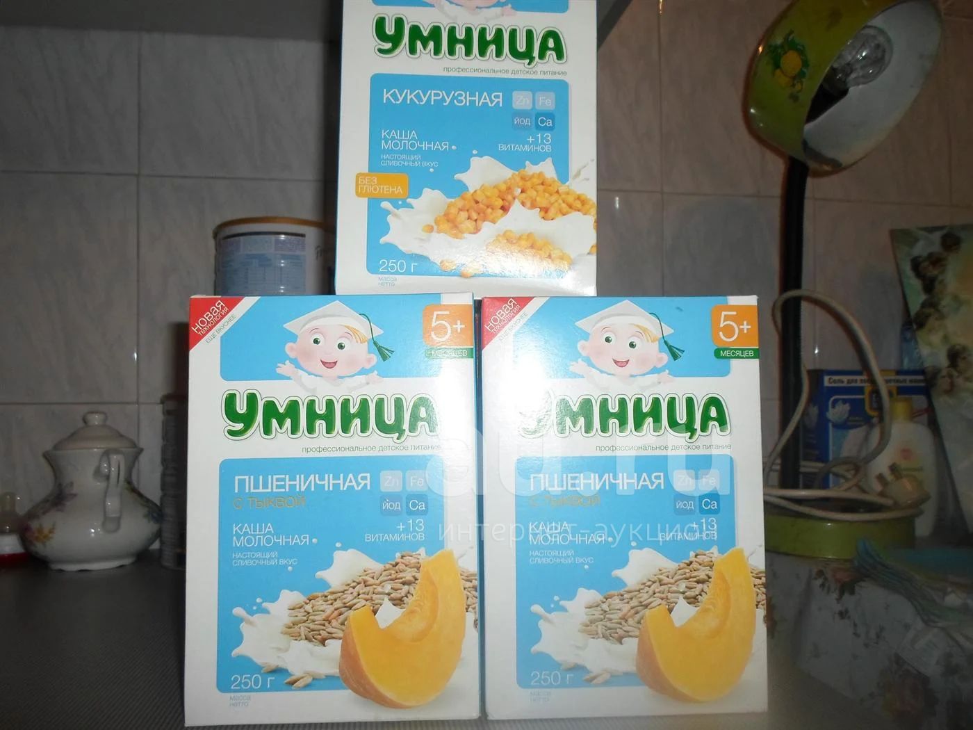 пять пачек каши. 4 пшеничных с тыквой, одна кукурузная.