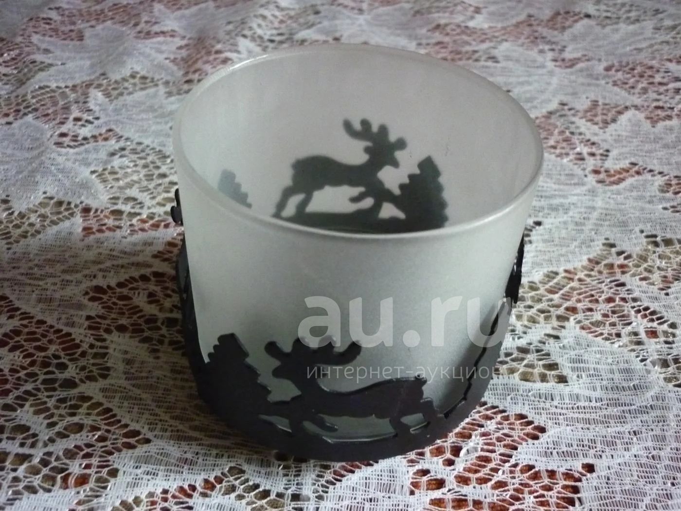 Подсвечник для чайной свечи. Хорошее состояние, диаметр 7,5см, высота 7,5см. При движении пламени создается иллюзия бега оленей.