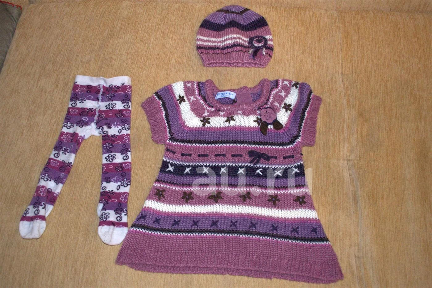 вязаные платье+шапочка+колготки, р.74, Германия
