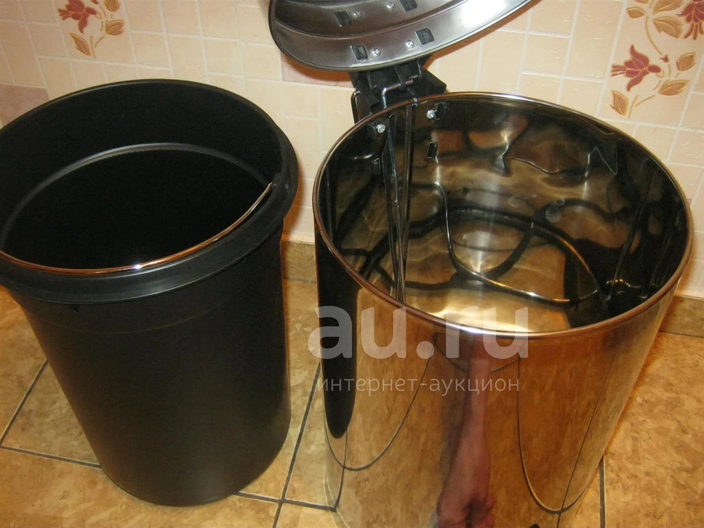 Ведро хромированное с педалью 12 литров. Съёмное внутреннее ведро.