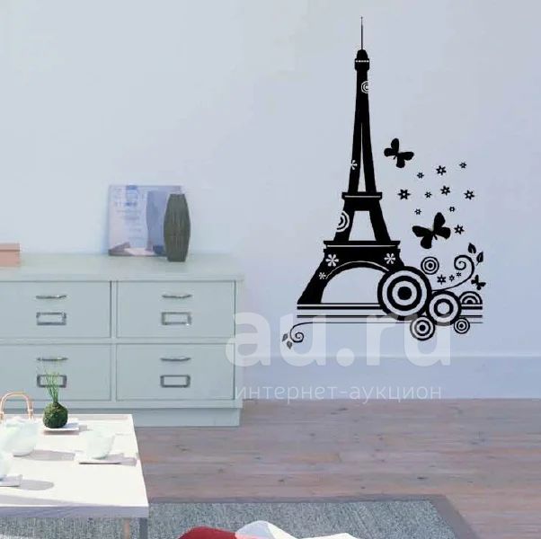 Наклейка в интерьер. Эйфелева башня, бабочки, завитушки...