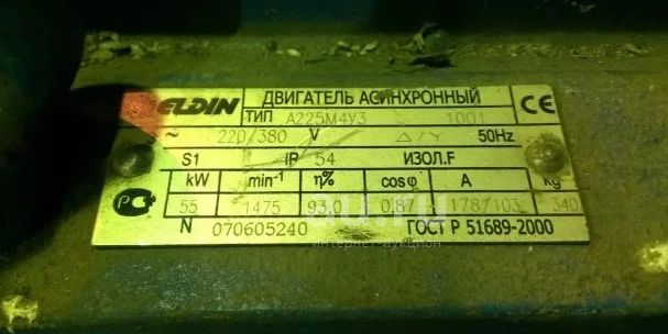 Производитель ОАО «ЭЛДИН» г.Ярославль, Асинхронный, Общепромышленный, Трехфазный, Высота оси вращения 225, Мощность 55 кВт, Частота вращения 1500 об/мин, 220/380