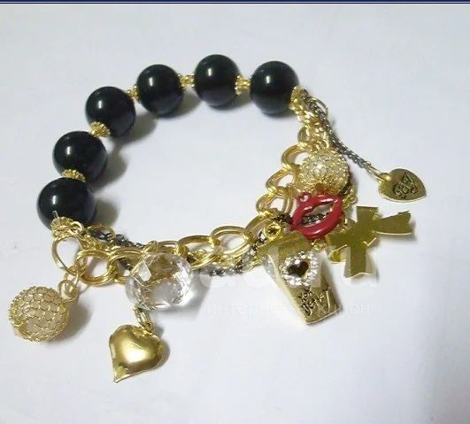 Романтичный браслет. Цвепочки. Подвески. Черный.