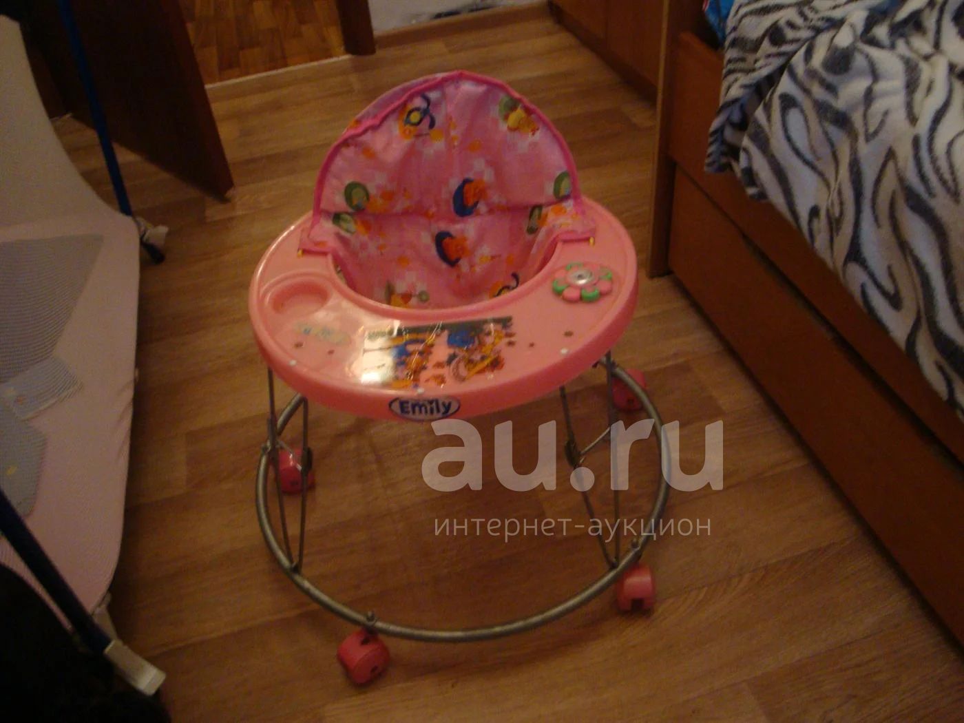 Ходунки для девочки. Музыка играет. Порвана ткань на сидении(на фото видно),но использовать можно. Отдали знакомые, нам не пригодились,ребенку нравиться ползать.