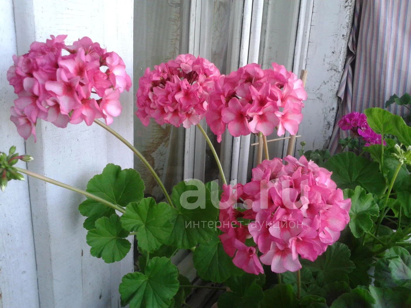 Очень красивая двухцветная пеларгония.Сорт очень неприхотлив к условиям выращивания. Продается укорененный черенок в 200 гр стаканчике( фото 4 ). На 1,2,3 фото - образец цветения.