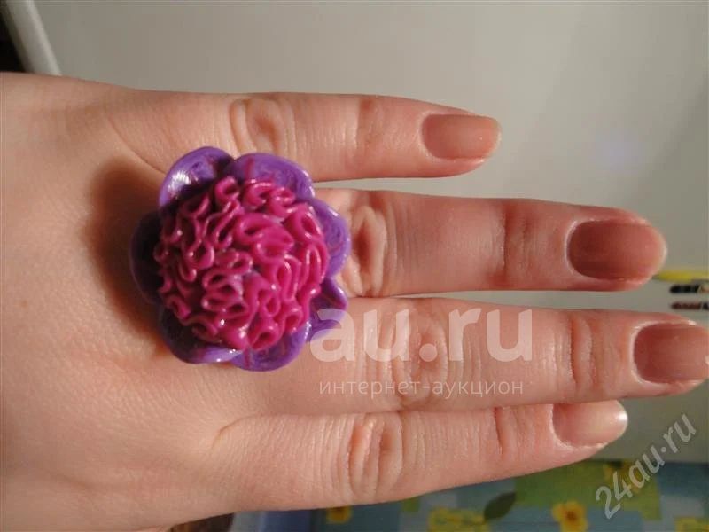 Изделия из полимерной глины кольцо "Пион" техника цветочная ручная работа