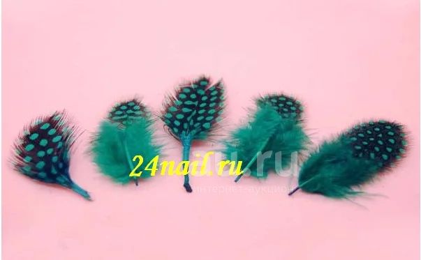 Перышки для украшения ноготков используют в основном под гель или под прозрачный лак. Использовать можно как целое перышко, так и его небольшую часть.