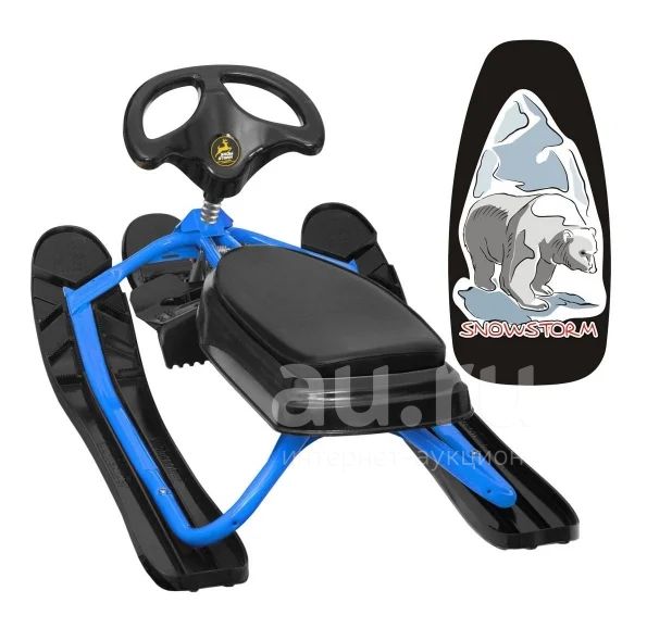 Снегокат Snowstorm Pro Х35230: металлическая надежная рама (480 мм), устойчивая конструкция, лыжи и руль из морозостойкой пластмассы, удобная травмобезопасная форма руля, высокий руль обеспчивает оптимально комфортную посадку, передняя лыжа с амортизатором, эффективный тормоз: две широкие платформы под каждую ногу с гребенками, карвинговая форма лыж (узкие в средней части, расширяющиеся к носу и пятке) позволяет разнообразно маневрировать, кататься "задом-наперд", большое мягкое сиденье, возможность посадки двух седоков, буксировочный трос автоматически сматывается, обеспечивая безопасность и комфорт, дизайнерский рисунок на сиденье: "МЕДВЕДЬ", вес - 6,2 кг,