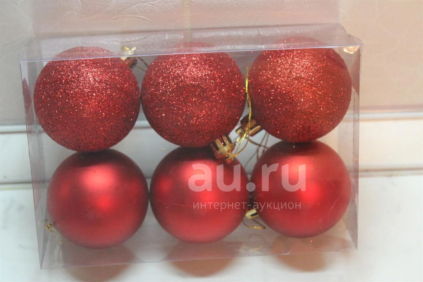 Набор из 6-ти новогодних Красных шаров №3. d-60мм материал пластик -Зато не разобьются! Новые!