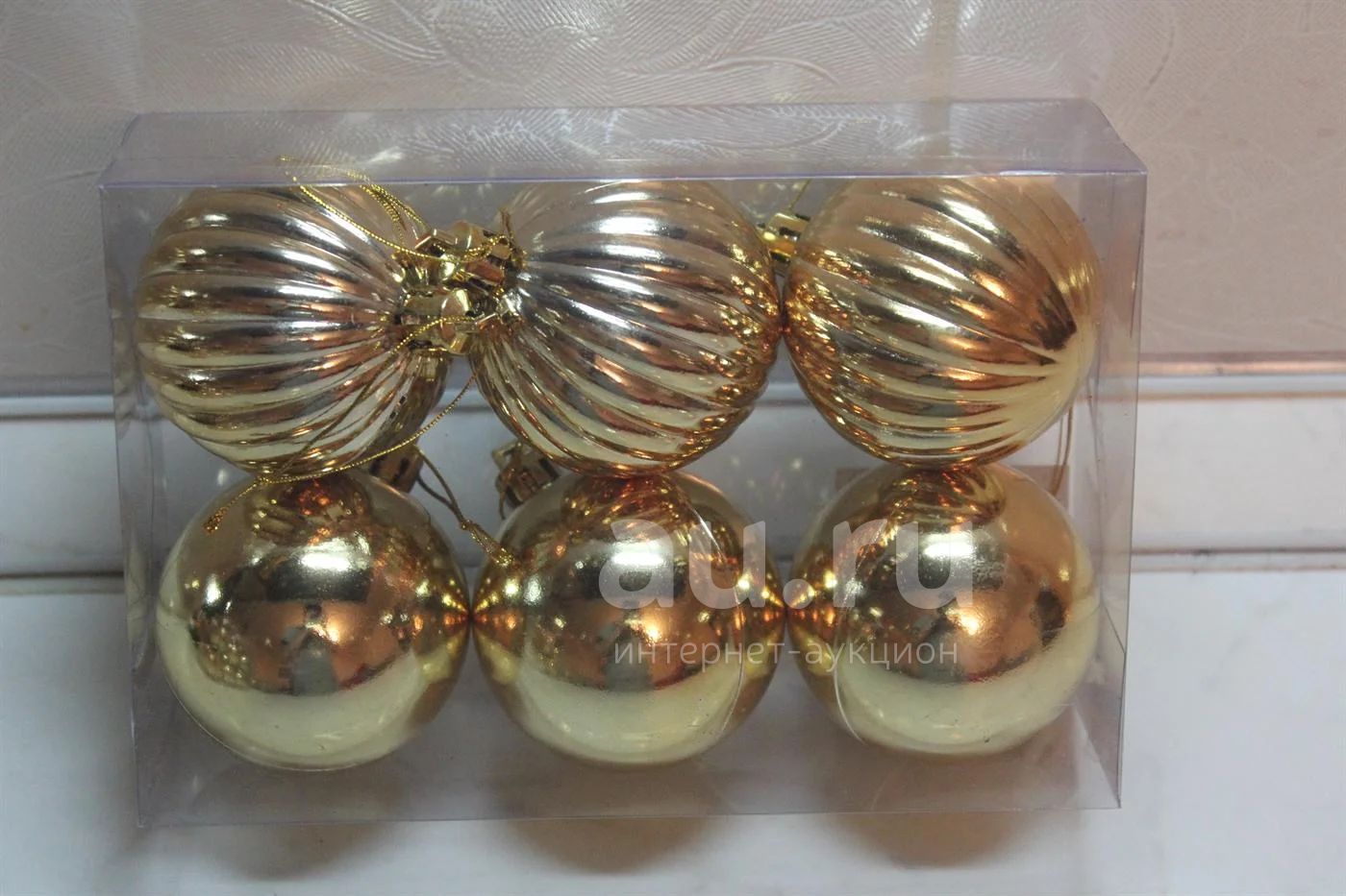 Набор из 6-ти новогодних Золотых шаров №2. d-60мм материал пластик -Зато не разобьются! Новые!