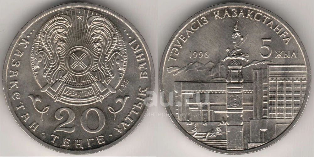 20 тенге Казахстан 1996. 5 лет Независимости ( с одной рукой)