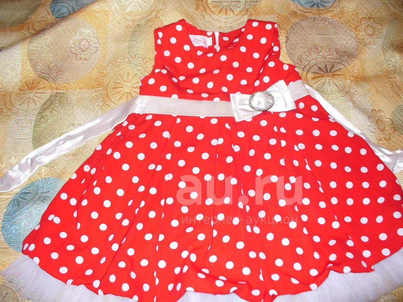 платье праздничное красное в горошек