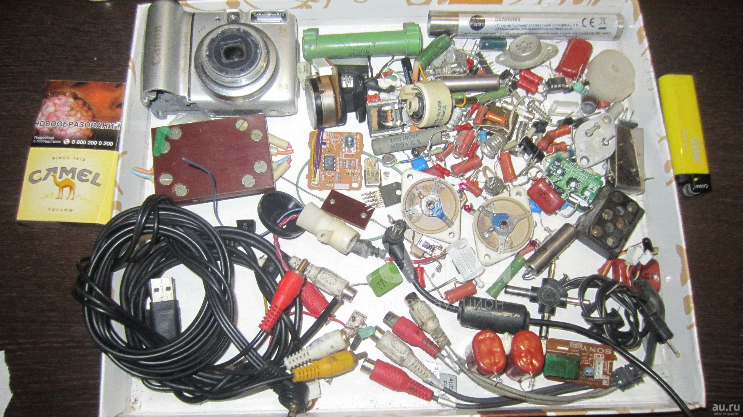 МЕГА ЛОТ.Куча радиодеталей (1.3КГ!).Хлам №3.(Транзисторы,резисторы,конденсаторы,диоды,моторчики,лампочки,трансформаторы..Фотоаппарат (на запчасти) и другое)Цена за всё!