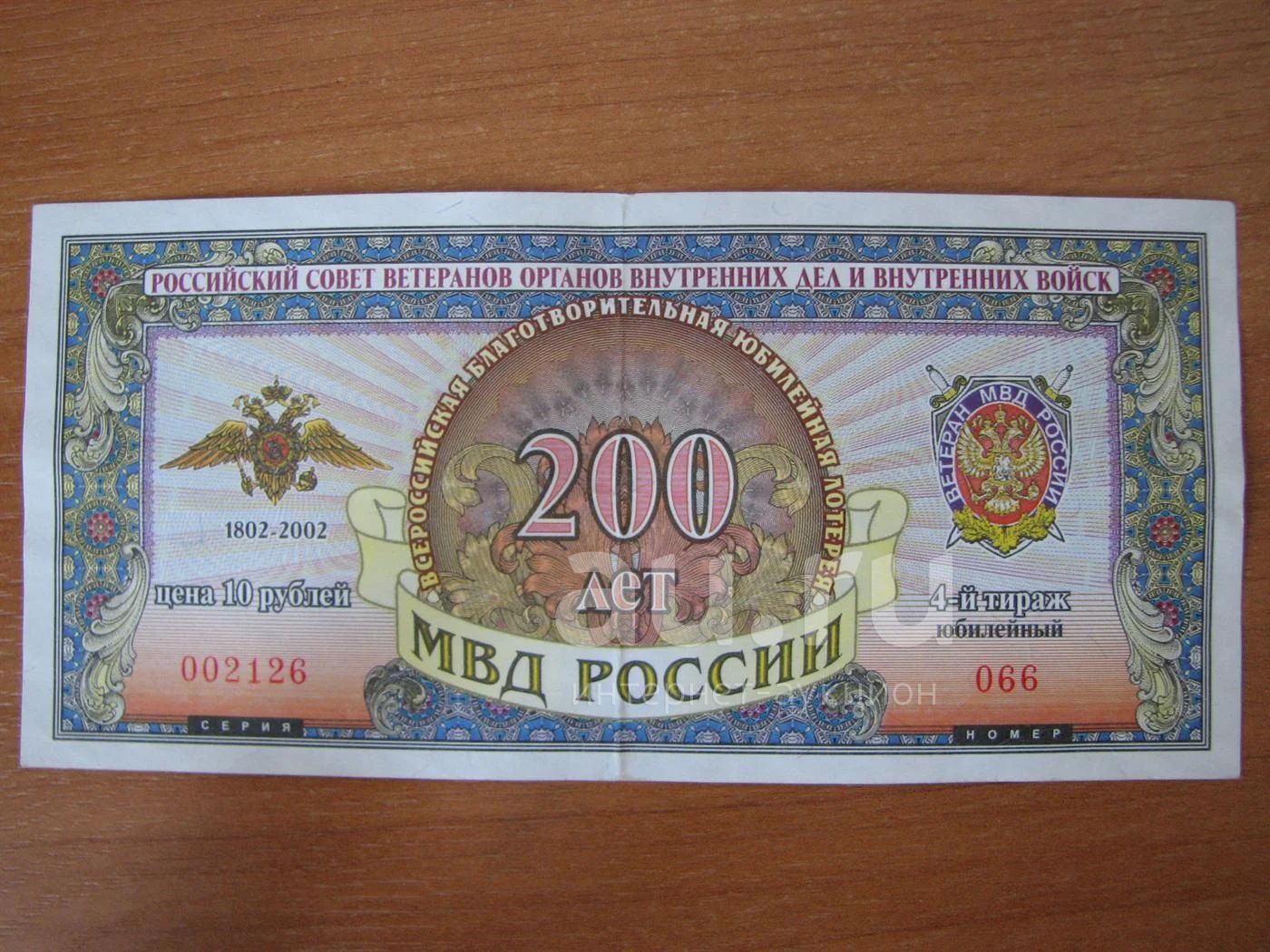 Лотерейный билет 200 лет МВД России. 4-й тираж.
