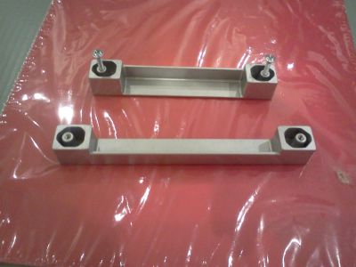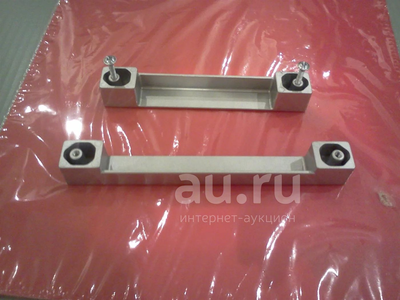 Стильные ручки прямоугольной формы из матового серебристого металла.
