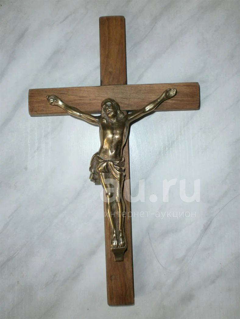 Размеры: высота 222 мм, ширина 130 мм, глубина 22 мм. Крест был изготовлен в конце 90 годов, в мастерской для продажи. Ранее никем не приобретался и не использовался. С обратной стороны имеет крепление для подвешивания на стене. Материал креста - вощеный дуб. Материал фигуры - сплав бронзы. Соединительные части стальные. Фигура изготовлена методом литья в землю с последующей обработкой и полировкой.