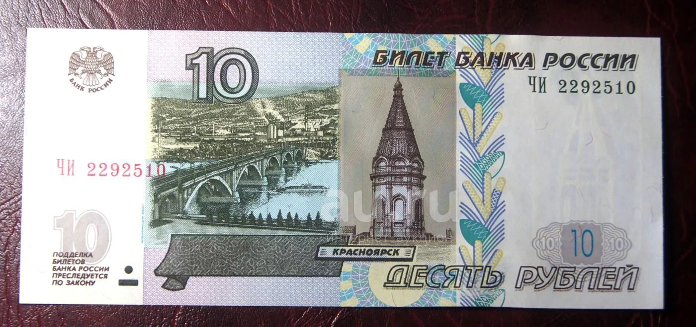 10 рублей 1997 г (модификация 2004 г.).Серия"ЧИ" Пресс.(Б - 09)