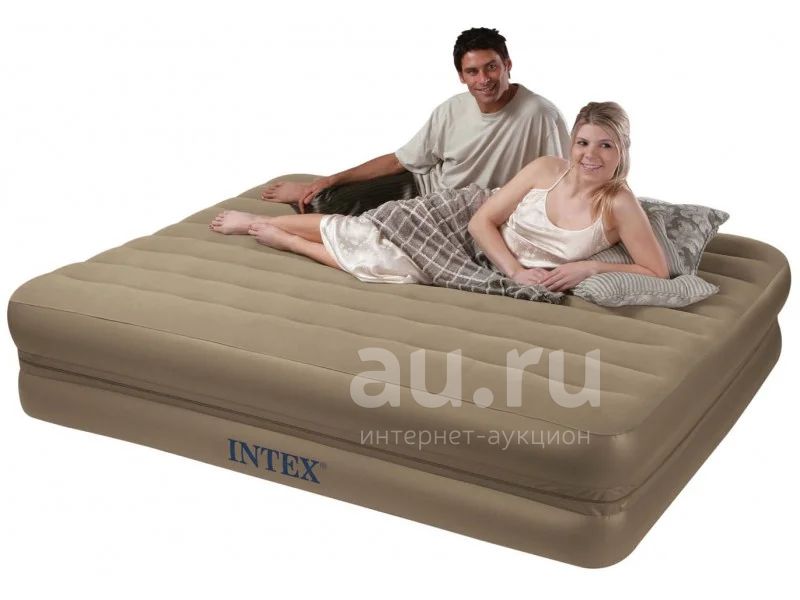 Высокая двуспальная надувная кровать Intex
