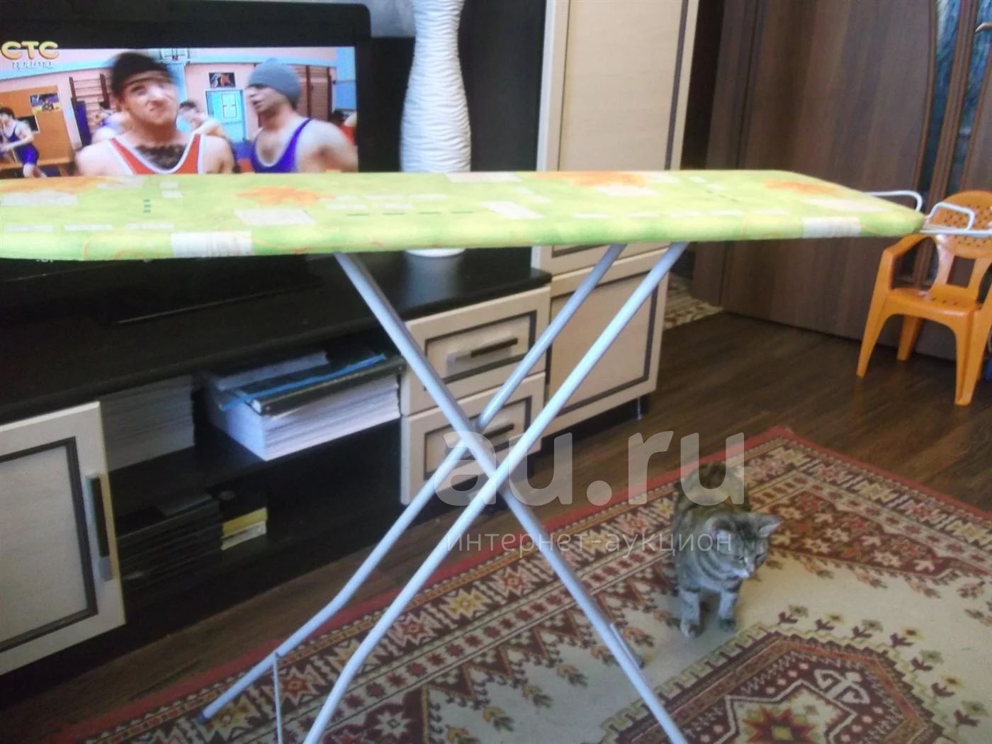 размер самой доски 108смХ32см, целая, не порванная, складывается, есть подставка для утюга