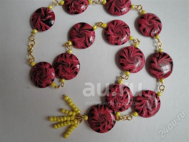 полимерная глина, фурнитура, бисер. Длина изделия 40 см