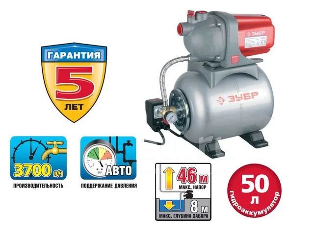 Насосная станция ЗУБР ЗНАС-1200-50 (1200 Вт+ бак 50 литров) (новый! гарантия 5 лет!)