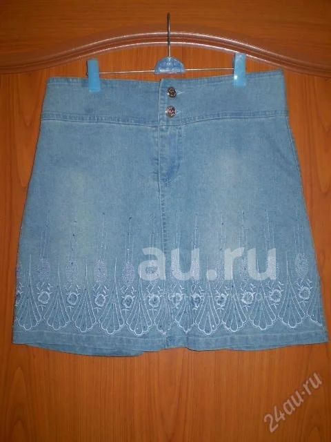 юбка джинсовая !44р с вышивкой!