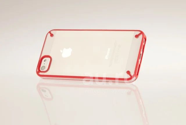 Силиконовый Чехол iPhone 5/5S Красный + Прозрачная Стенка Бесплатная доставка