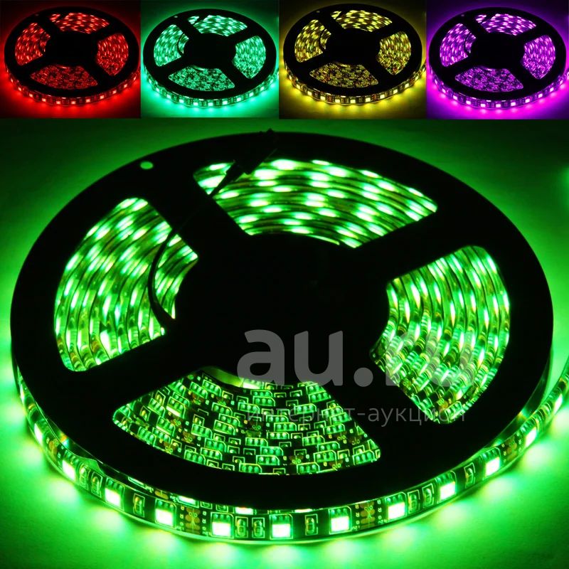 Светодиодная лента влагостойкая (IP65) 5 метров 12V 72W 300 LED 5050 SMD RGB (многоцветная) 60 диодов на метр чёрная подложка (временно нет в наличии)