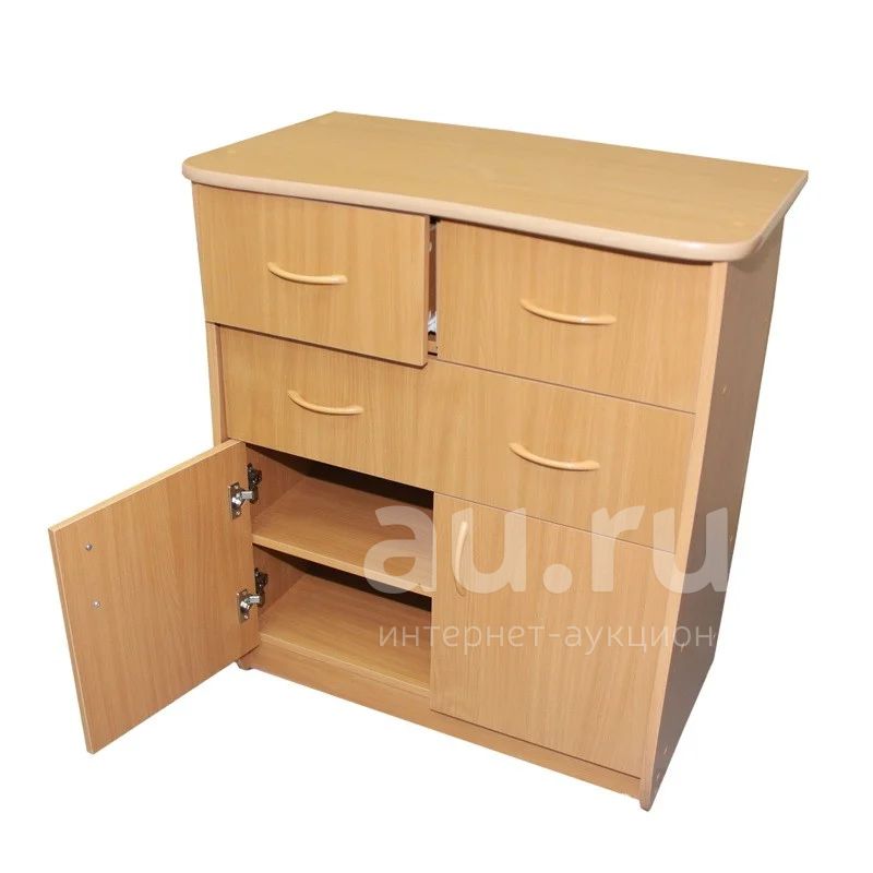 Вместительный комод с тремя различными выдвижными ящиками и закрытым отделением с полкой. Комод выполнен в классическом стиле, что позволит ему прекрасно вписаться как в спальню, так и в гостиную.
