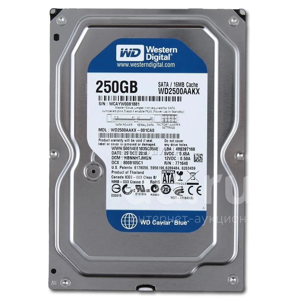 Жесткий диск SATA-3 250Gb WD Blue 7200rpm [WD2500AAKX] Cache 16MB
