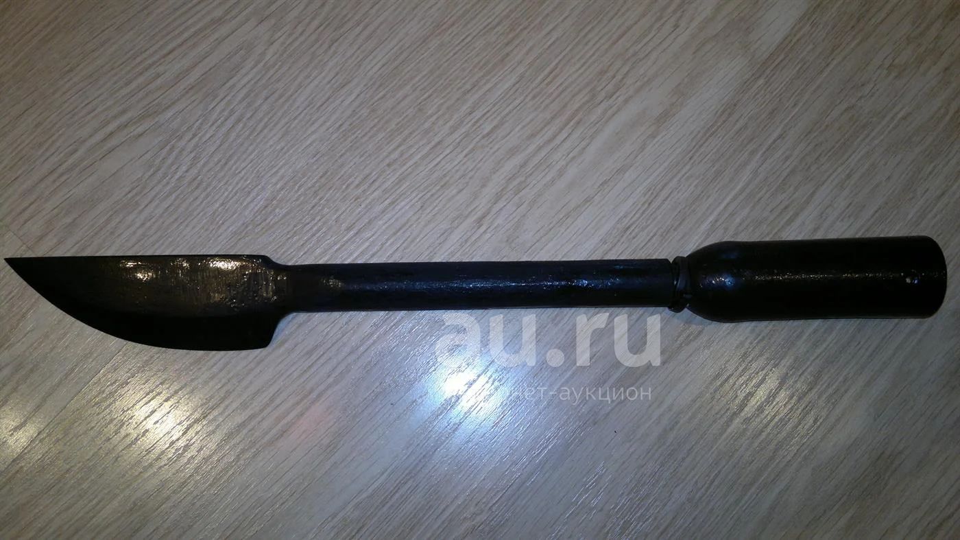 Пешня изготовлена из стали 65Г, закалена и остро заточена.Длина пешни 500 мм. Вес 1.7 кг.Тулейка выполнена на конус , под заводской черенок 38 мм , соединяется с пешней резьбой М20.