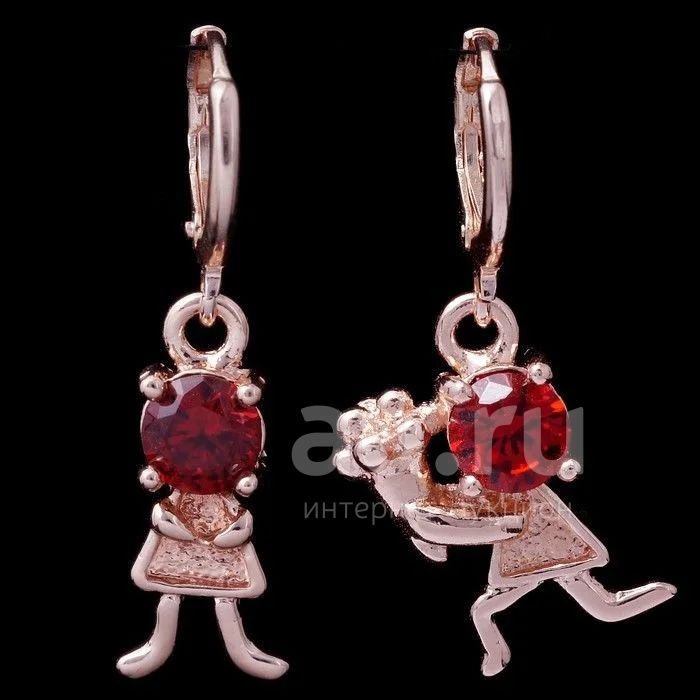 Серьги. Девочка+Мальчик с букетом цветов. Предложение. Красные фианиты.