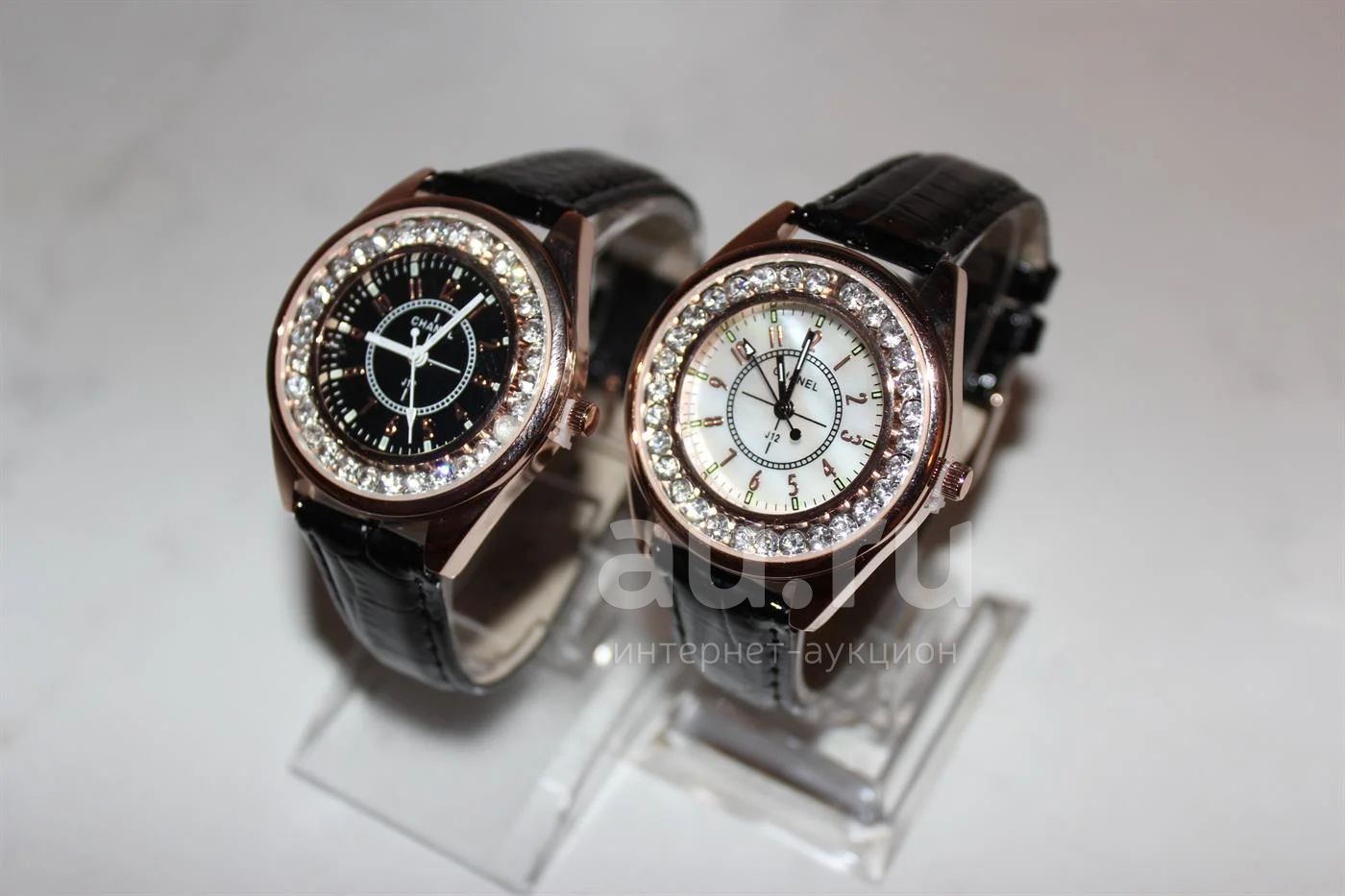 Часы Chanel золотые с белым циферблатом с кристаллами,на черном кожаном ремешке.на фото справа.Новые в упаковке. И вы великолепны!
