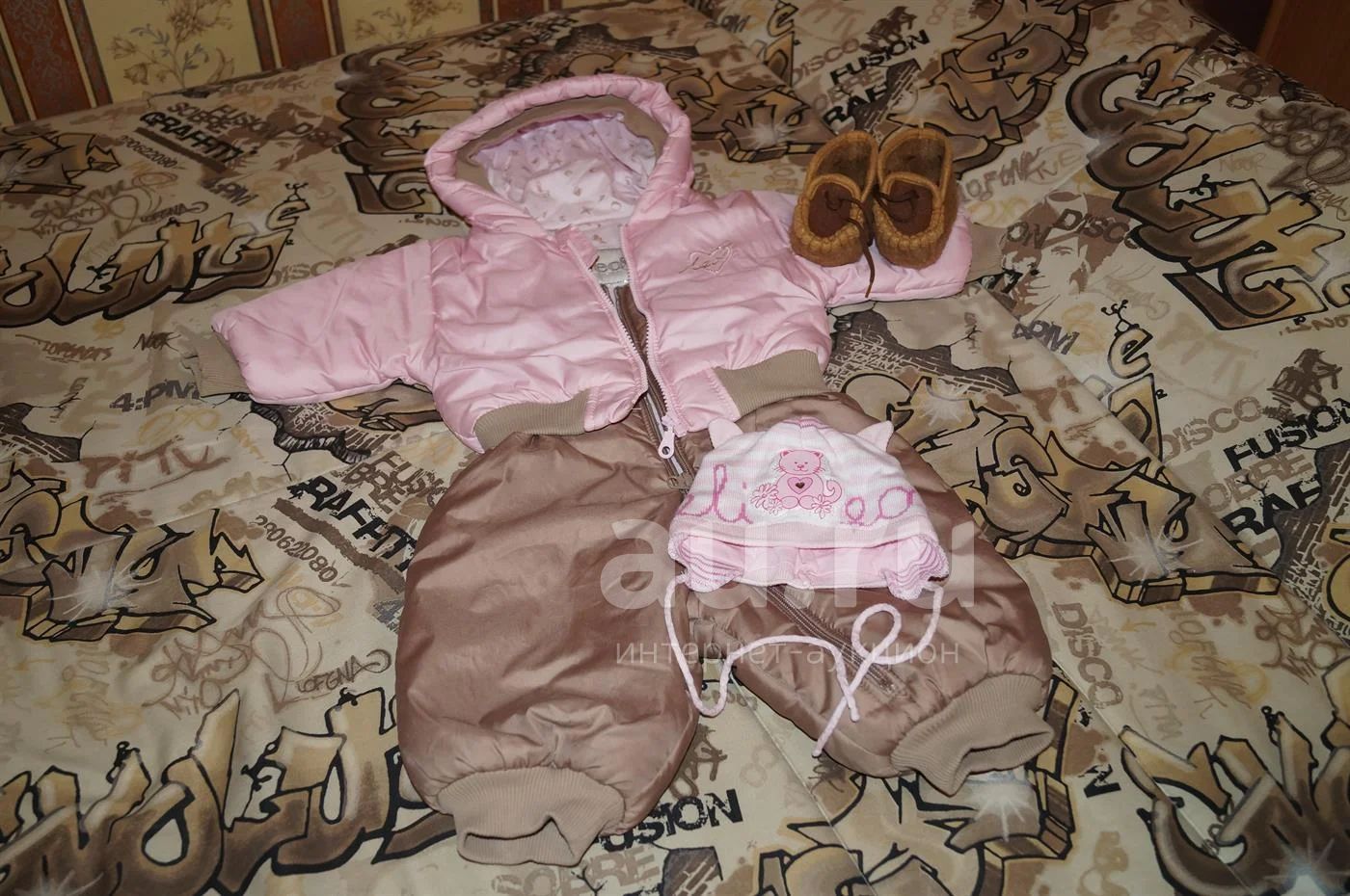 Комбинезон демисезонный, в придачу теплые верблюжьи пинетки и шапочка