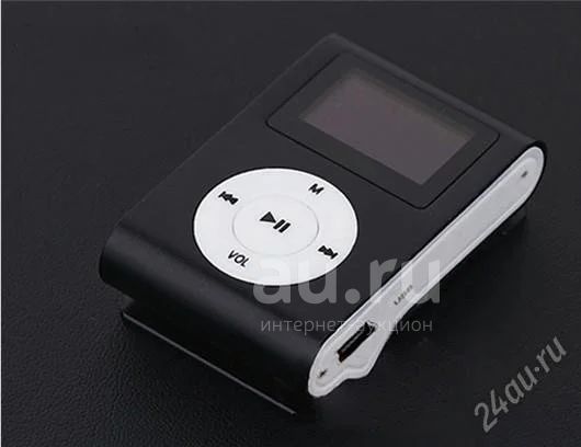 Портативный MP3 плеер с клипсой и дисплеем+наушники и usb-кабель в коробочке. чёрный