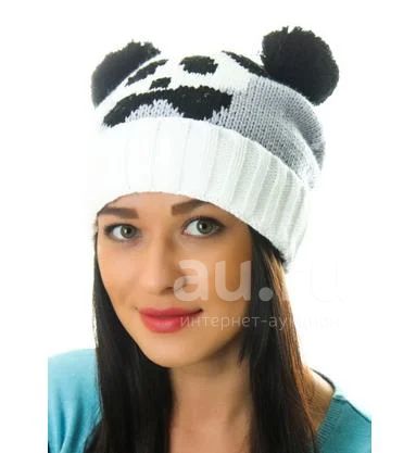 Новая шапочка, теплая. Рисунок панды украшен черными стразами.
