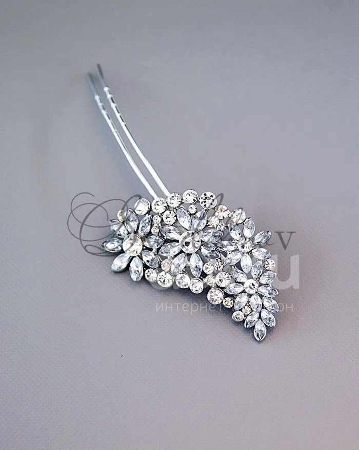 Заколка в виде каскадного букета, оформлена кристаллами. Крепление шпилька.