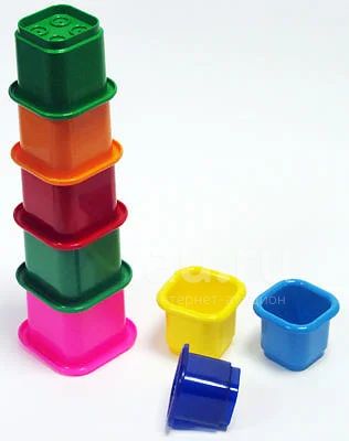 В наборе 8 квадратных стаканчиков: желтый, оранжевый, красный, розовый, синий, голубой, темно-зеленый, светло-зеленый.