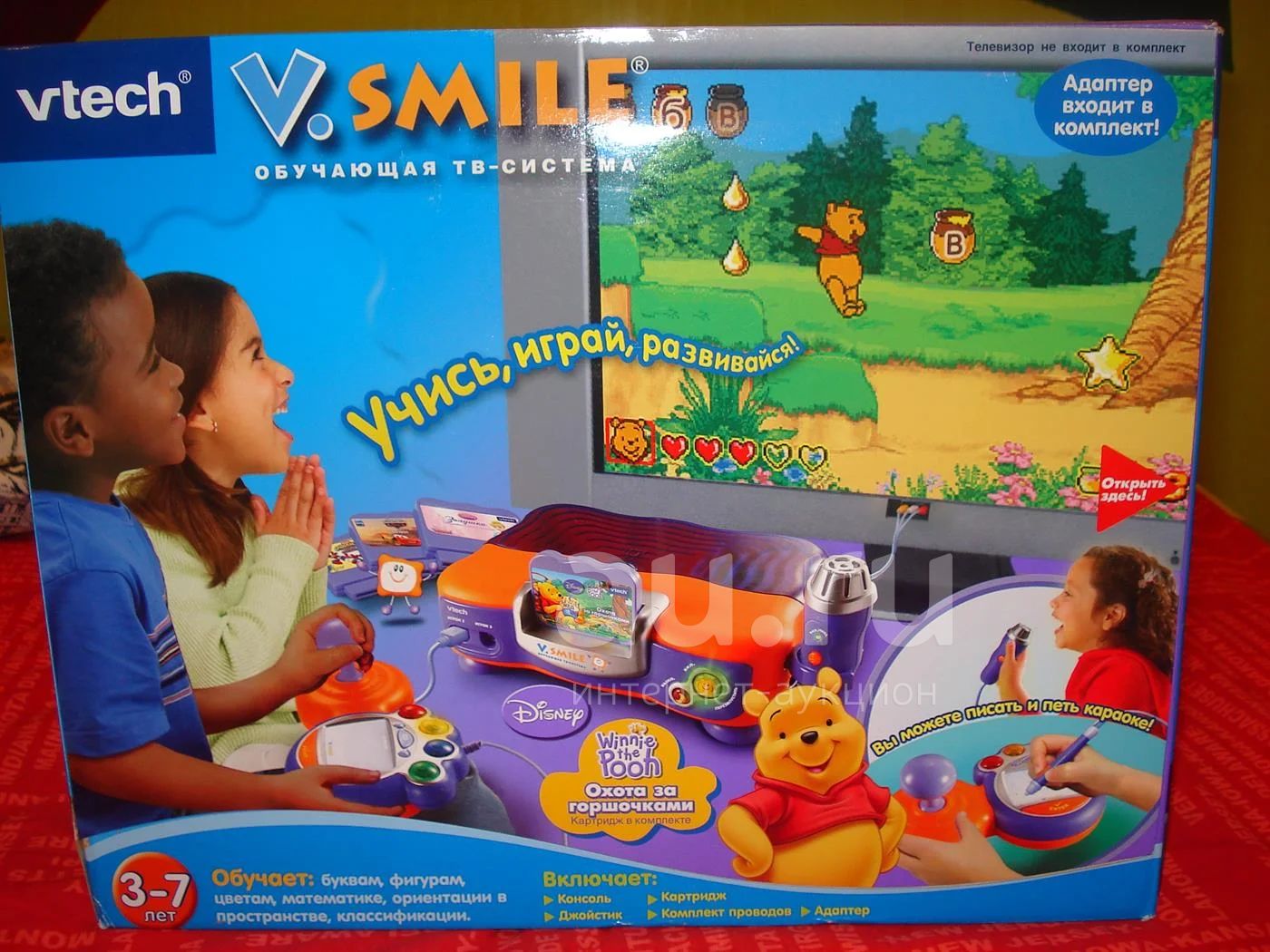 Развивающая и обучающая ТВ-приставка для детей 3-7 лет vteck + 4 картриджа.