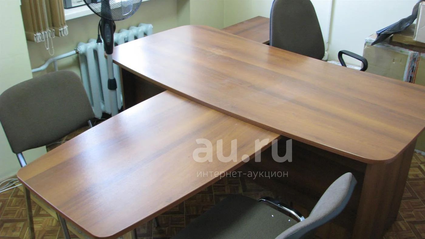 Большой директорский стол, в комплекте с приставным столом для переговоров на железной ноге, + маленький стол с тумбой. Состояние хорошее.