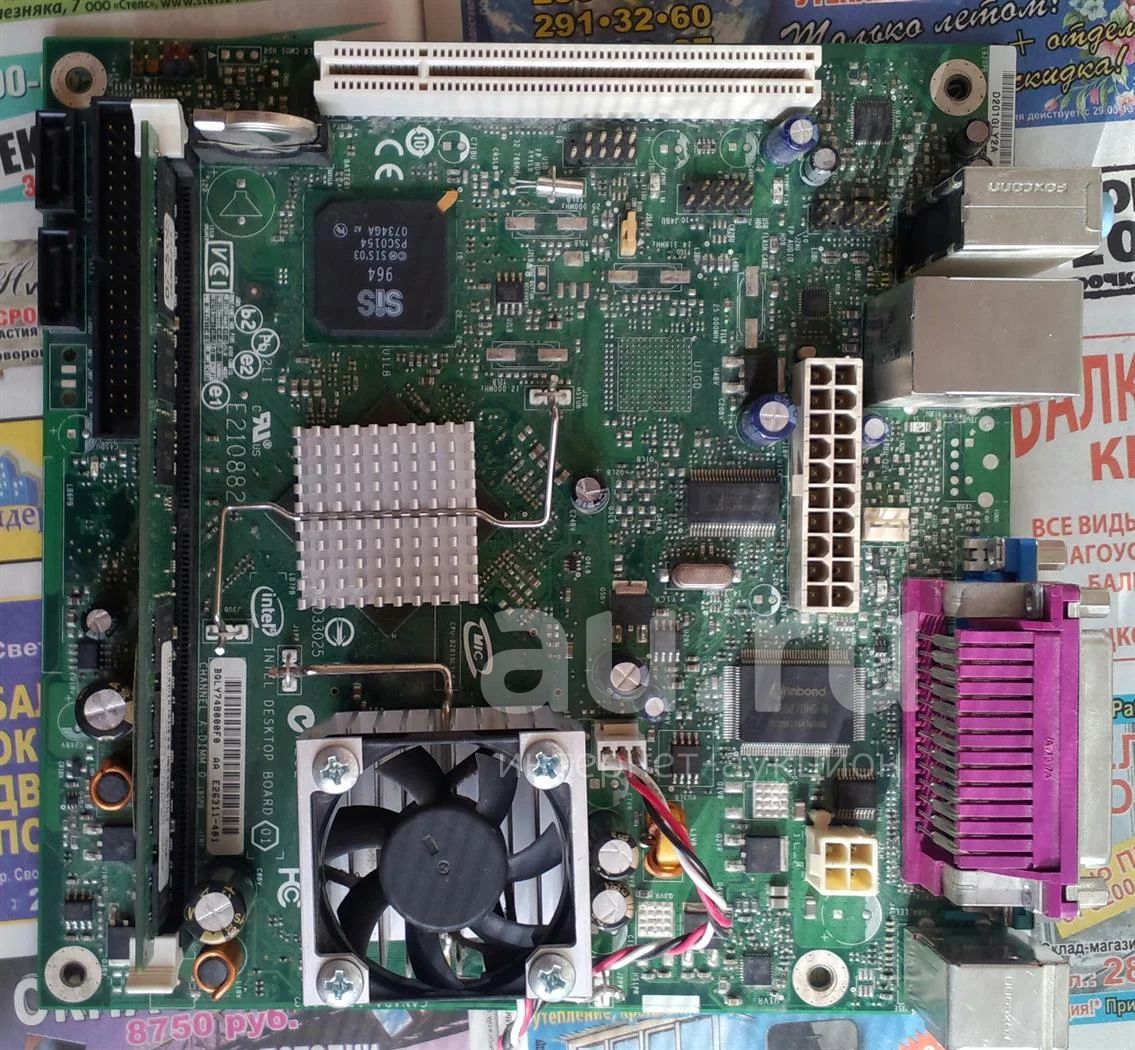 материнская плата Intel D201GLY2 (встроенный Celeron 1.2ГГц /2 SATA/1 IDE/2+4 USB 2.0/LPT/Video D-sub/mini ITX)+DDR2 1Gb RAM (экономичная)