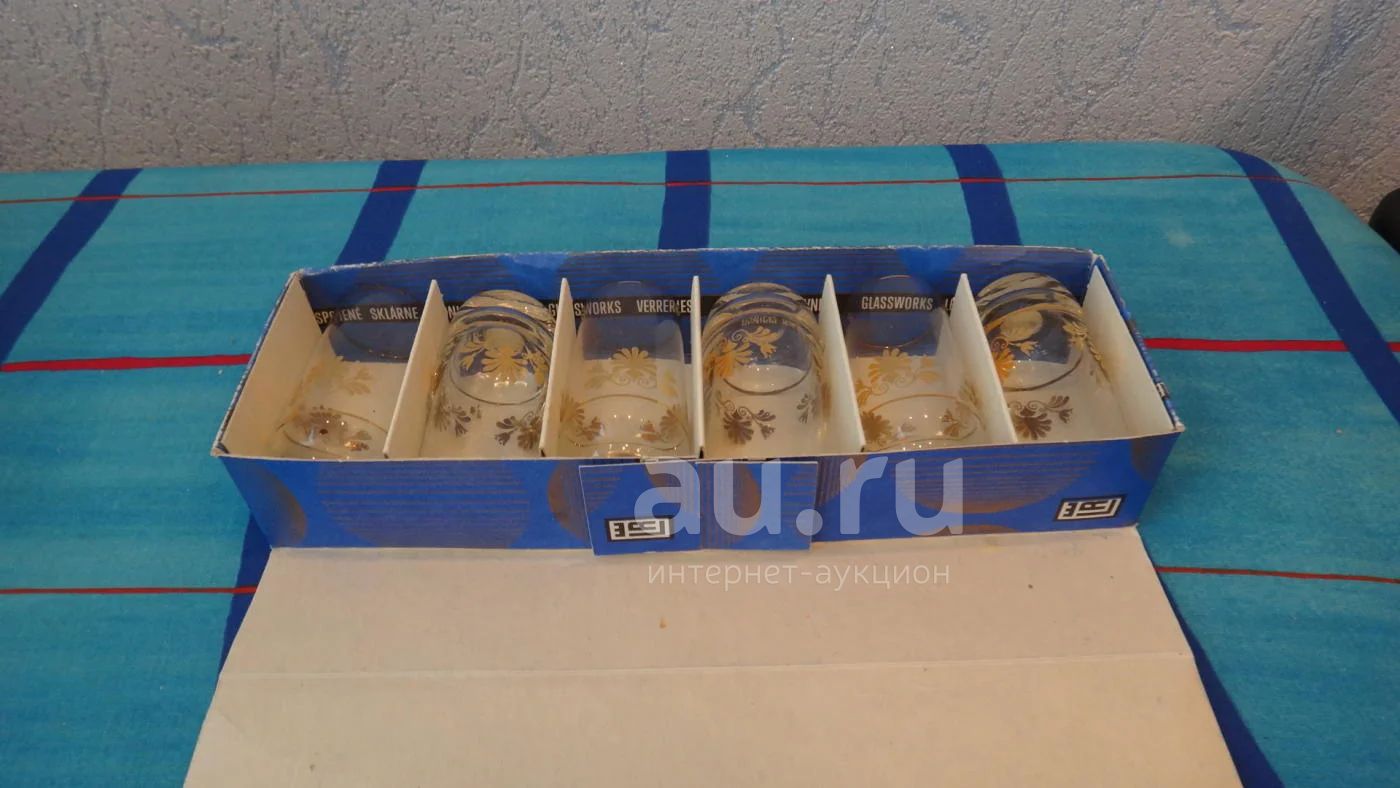 В наборе 6 бокалов-рюмок, высота 8 см.Производство- Чехословакия .Обьем 60 мл. Новые.