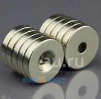 Неодимовый сильный магнит 25мм х 5мм отв.4мм