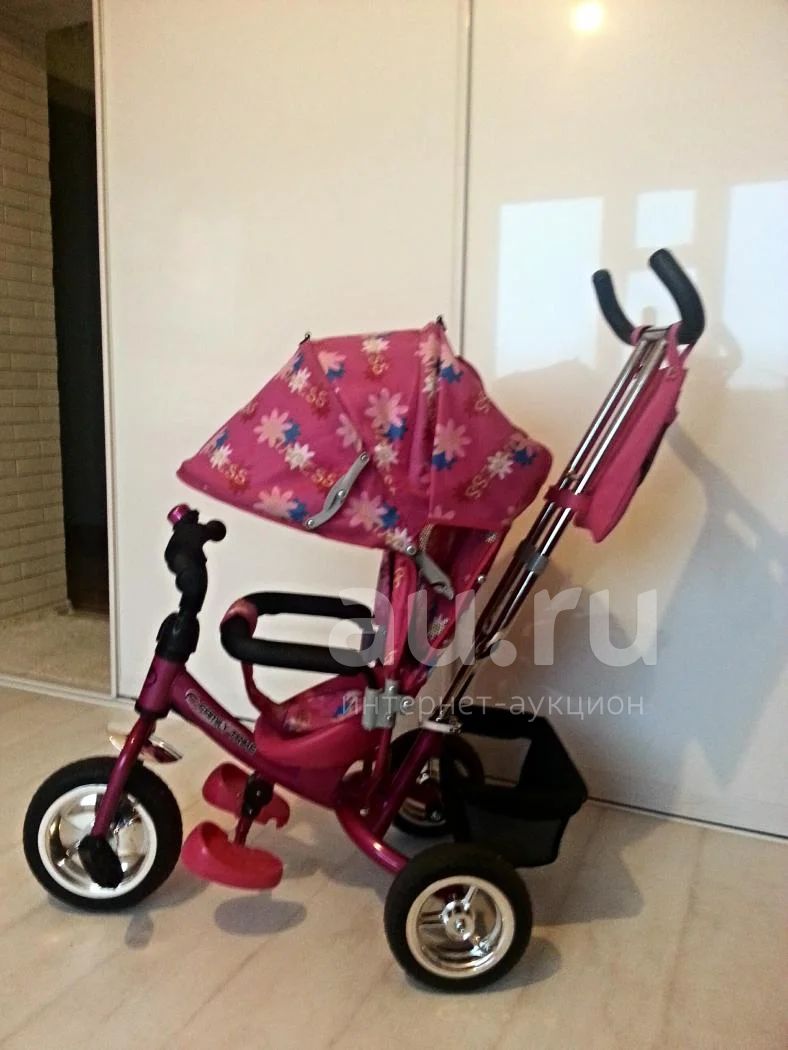 Детский трехколесный велосипед FAMILY TRIKE седло с мягкой спинкой, колясочная крыша,регулируемое положения спинки, звонок, багажная корзина, складная подножка, разъемный страховочный обод, сумочка для мелочей, родительская ручка управления (крюками вверх-очень удобно вешать сумку или пакет). Большой капюшон спасает от ветра и дождя ребенок полностью прячится под капюшон. Колеса из полеуретана (мягкий ход и не стучат по асфальту). Цвет розовый. Состояние нового.