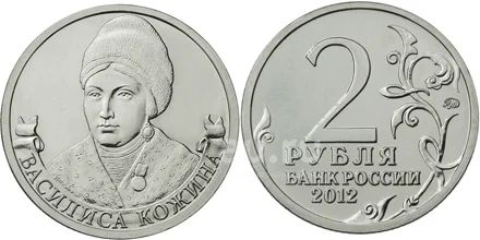 2 рубля 2012г Василиса Кожина из серии 200 лет войне 1812г (Война 1812 "Бородино") мешковая