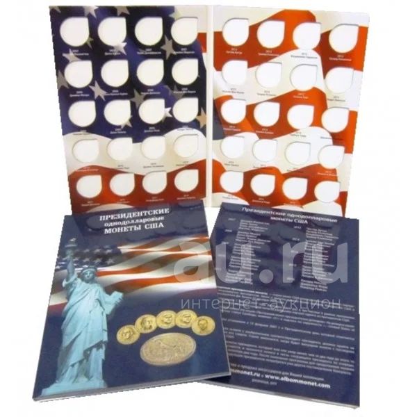 Альбом для монет 1 доллар (однодолларовых) серии "Президенты США" для одного монетного двора. Альбом-планшет(раскладушка)