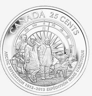 Монета 25 центов .Канада 2013 г.100 лет первой арктической экспедиции Канады