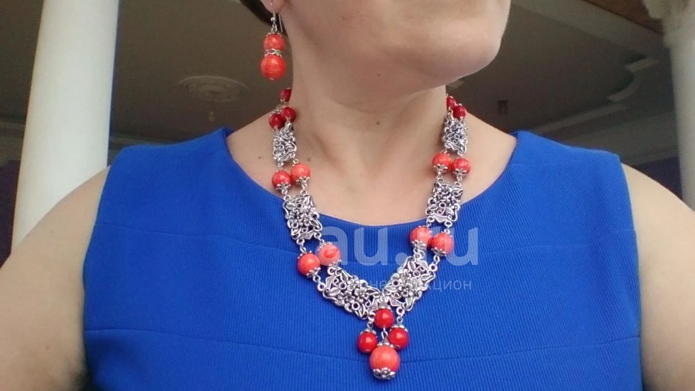 Натуральный коралл, фурнитура под серебро.