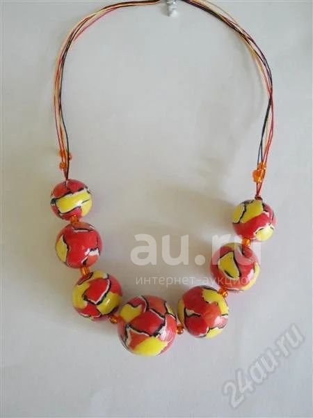 Изделие из полимерной глины,колье"Горячее солнце".Техника Акварель.